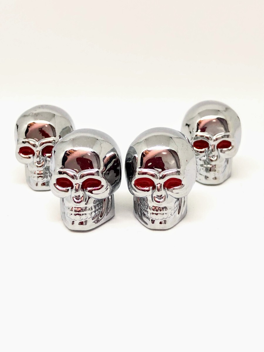 - スカル ドクロ 銀 ホイール エア バルブキャップ ガイコツ トヨタ ニッサン ホンダ ミツビシ ダイハツ マツダ スズキ