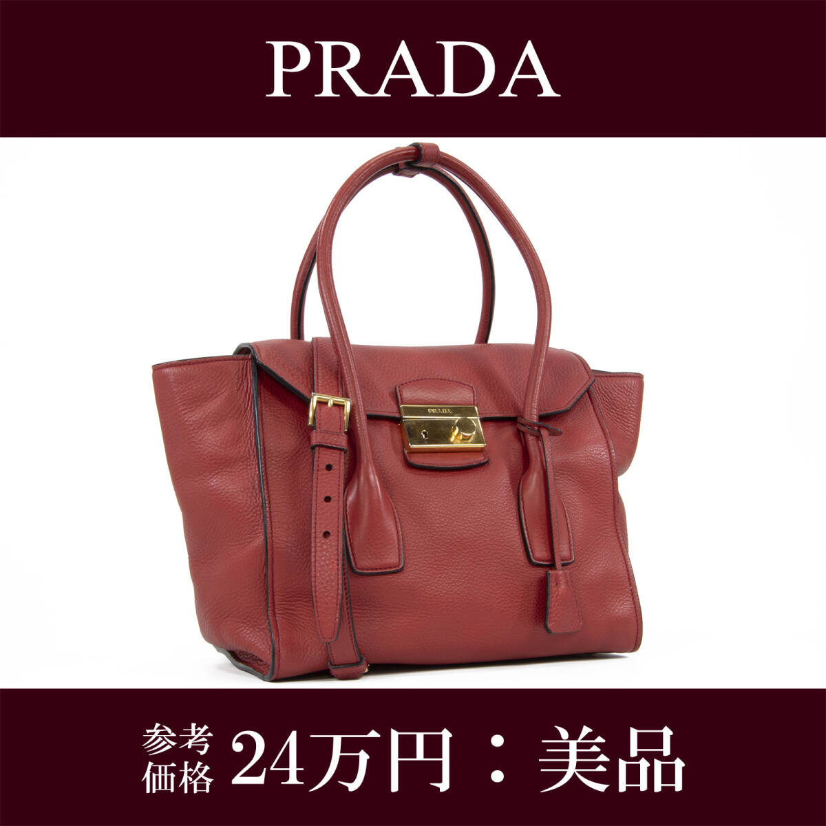 - 本物 送料無料 プラダ ショルダーバッグ ハンドバッグ レディース 赤 レッド 肩掛け 斜め掛け ロゴ マーク 本革 レザー 鞄 バック I237