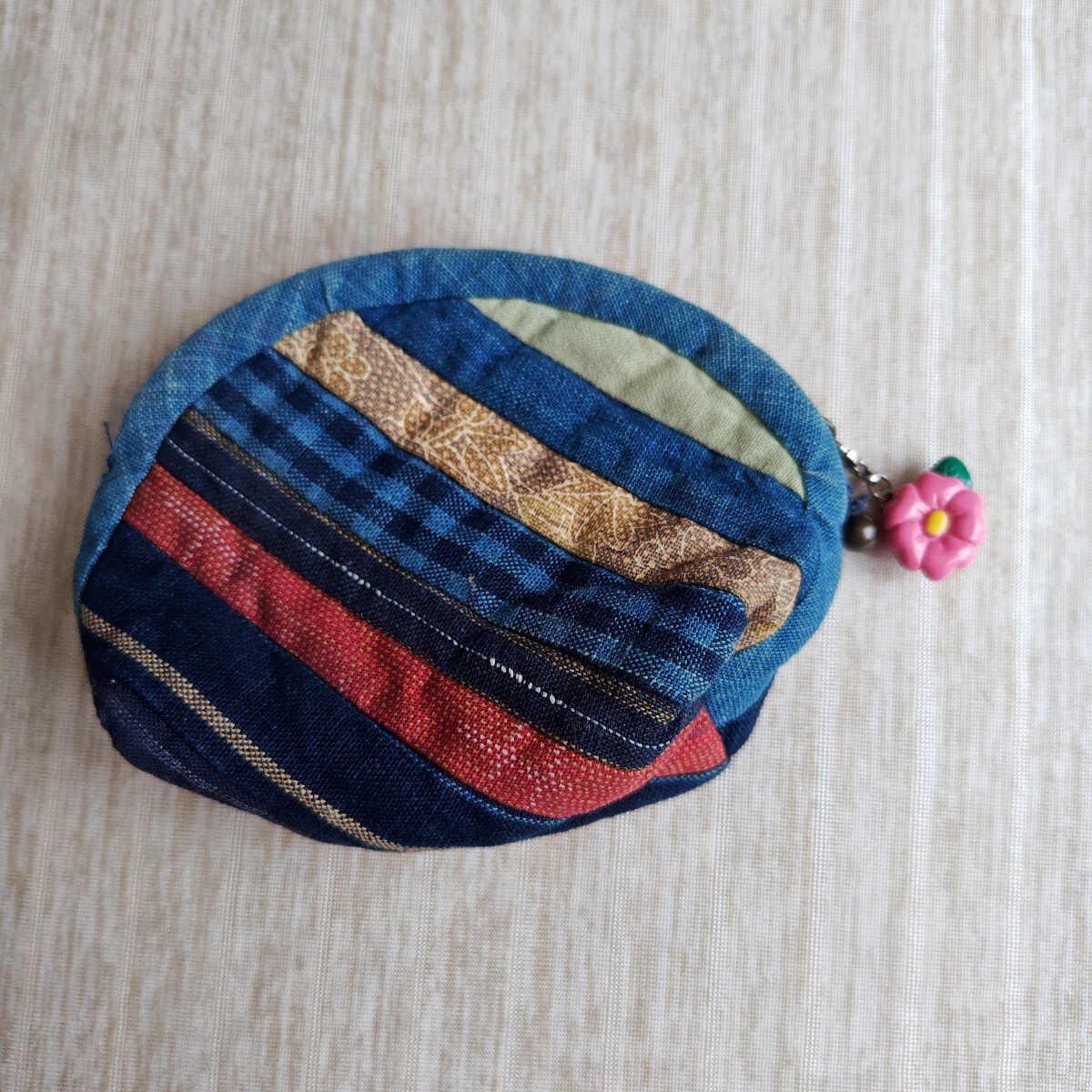 - ポーチ 小銭入れ コインケース ハンドメイド 和柄 椿大社のキーホルダー付き 和 椿チャーム 小物入れ
