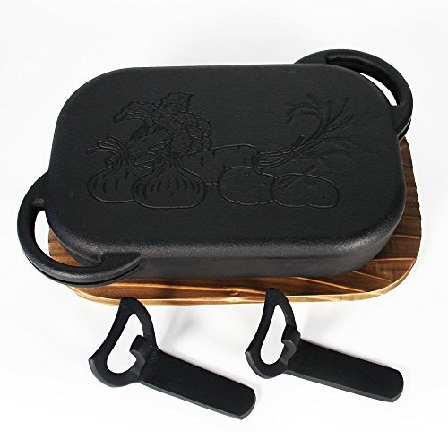- 日本製 南部鉄器 『ベイクパン』 (木台・ハンドル2ヶ付) グリルパン IH対応/ガスコンロ対応/魚焼きグリル対応/オーブントースター対応