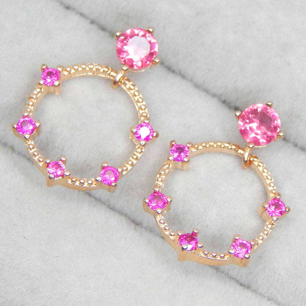 - 残り1点★豪華 限定 ジルコニア 6連CZルビーダイヤモンドピアス シルバー925 ピンクゴールド アクセサリー レディース イヤリング化可