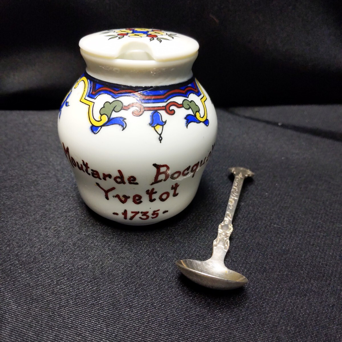 > 559 フランス アンティーク 陶器製 マスタードポット Bocquet 口径約5.2cmx高さ9cm