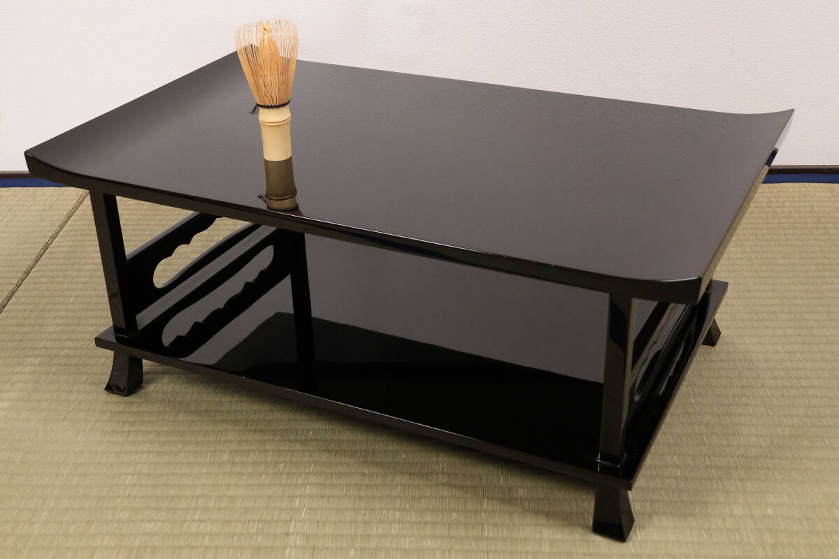 - 漆芸 黒塗 冠卓 二段卓 54.6cm×33.4cm 木製 天然木 黒無地 長方卓 花台 香炉台 伝統工芸品【MA660】