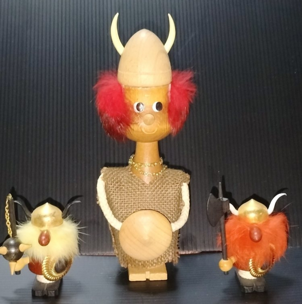 > ヴィンテージ ノギンス バイキング人形 3体セット デンマーク オブジェ 北欧 インテリア 木製 ウッド 1986年 お土産 置物 ビンテージ