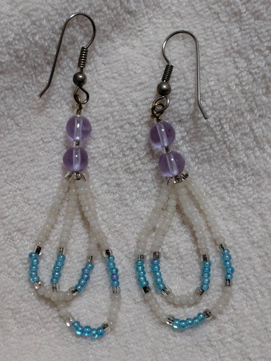 - 57*【中古美品】*02-02 米国購入品♪ 幸運のアメジスト入り♪ 青系ビーズピアス 送料無料
