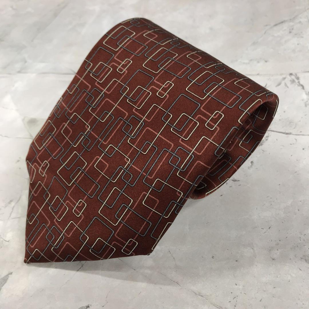 - 【美品】イヴサンローラン ネクタイ 赤色 幾何学模様 絹100%【n1850】