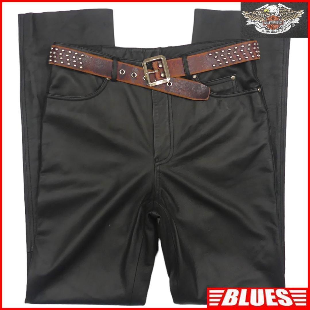 - 即決★HARLEY DAVIDSON★W34 レザーパンツ ハーレーダビッドソン メンズ 黒 本革 ライダースパンツ 皮 パンクロック ツーリング