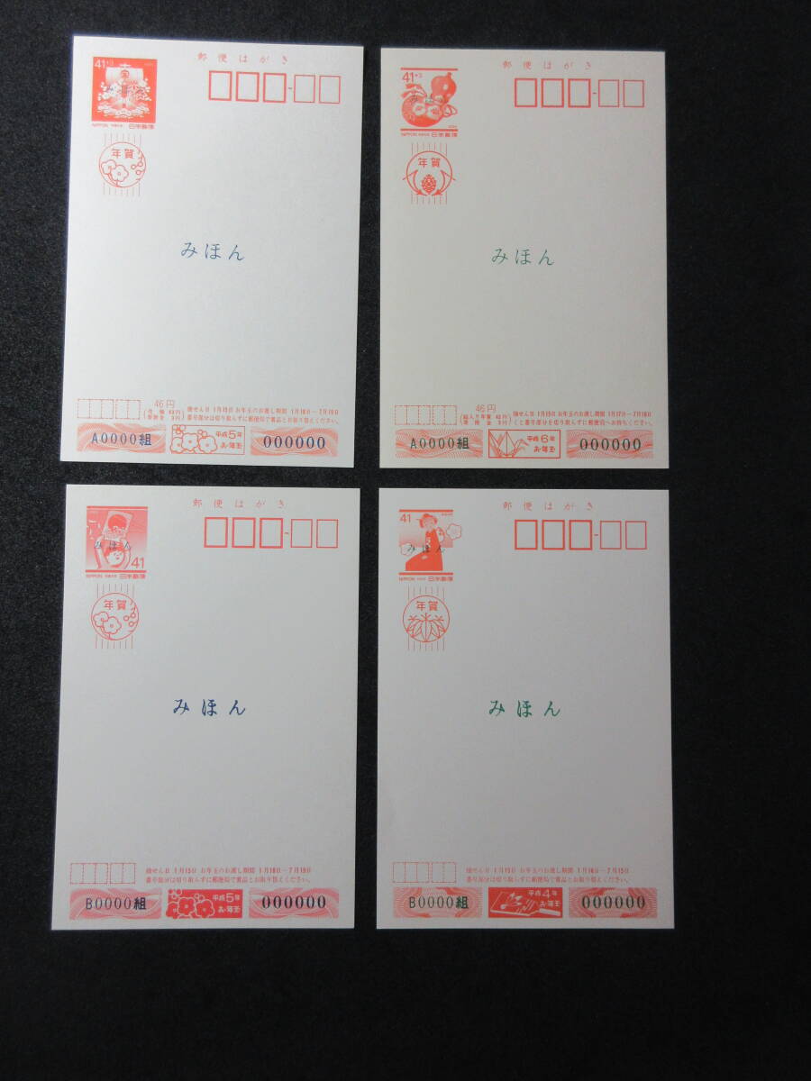 - (みほん)年賀はがき 「群鶏図」、「いかのぼり」、無地2 寄付金付き2枚+寄付金なし2枚=計4枚