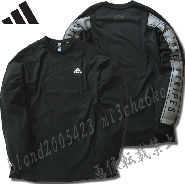 > ■新品【adidas】アディダス ゴルフに最適 両腕BIGロゴ ルーズフィット 速乾生地 クルーネック 長袖シャツ■BK/XL(LL)