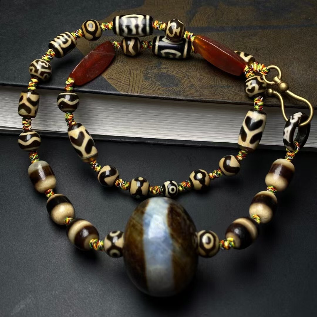 - 秘藏 清代 チベットの老天珠 高油老料 【一糸の天珠多宝天珠ネックレス 】 極上品 包漿渾厚 裝身具 骨董品 賞物 置物 風水 開運 辟邪 5.29