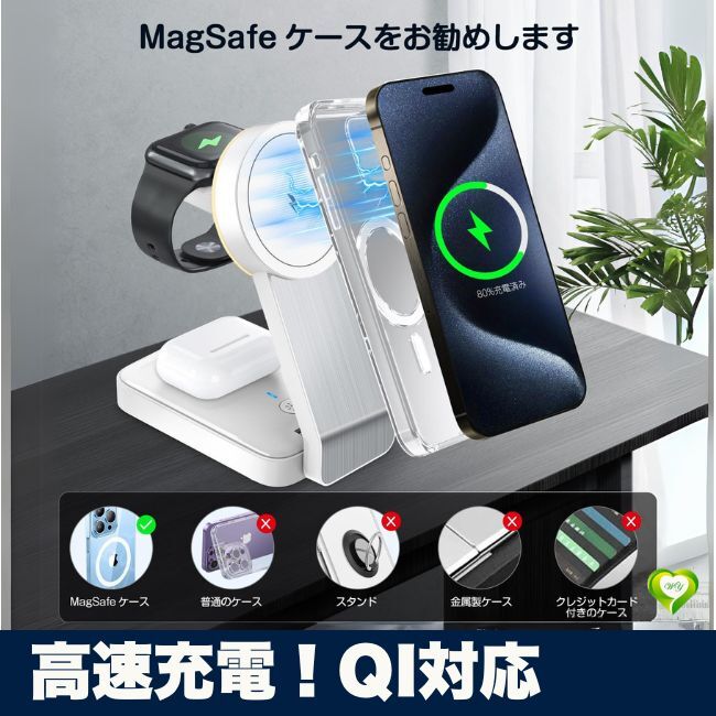 - 【高速充電!Qi対応】ワイヤレス充電器 3in1 マグネット式 MagSafe充電器 人気 おすすめ