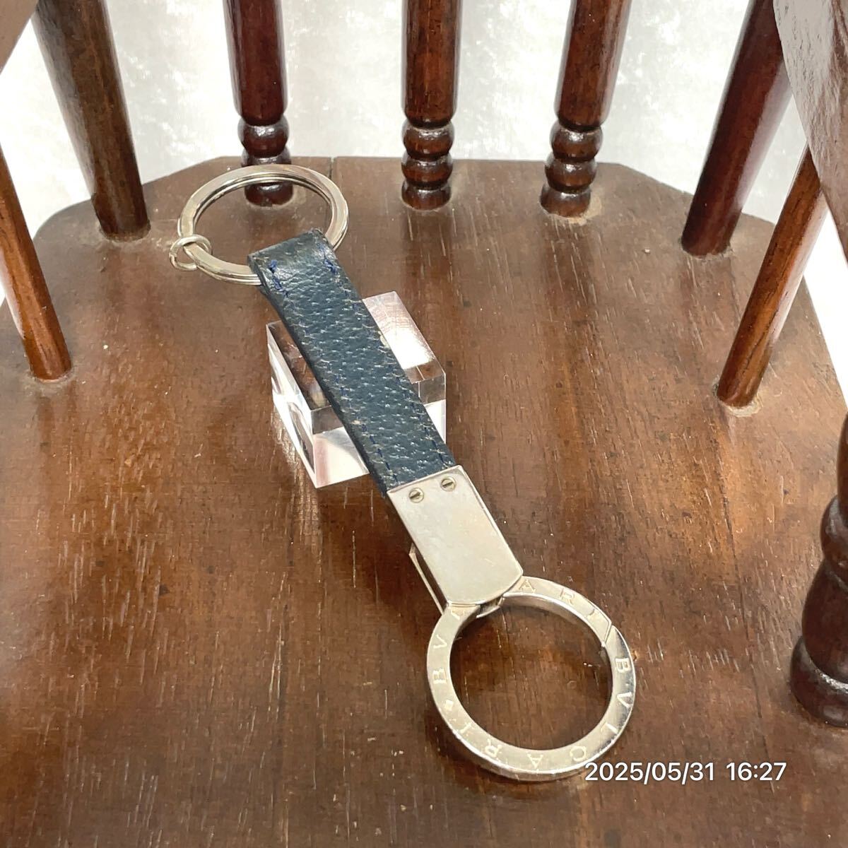 - BVLGARI ブルガリ ブランドロゴ シルバー×ブラックカラー レザー 革 キーホルダー キーリング チャーム アクセサリー 小物