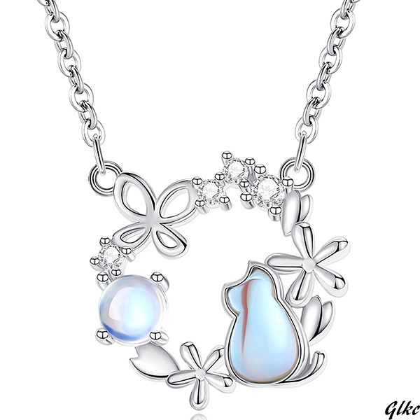 - 【チェーンの質感が上品で、着け心地が良い】ネックレス レディース 猫モチーフ ムーンストーン 誕生石 シルバー925素材 ジルコニア