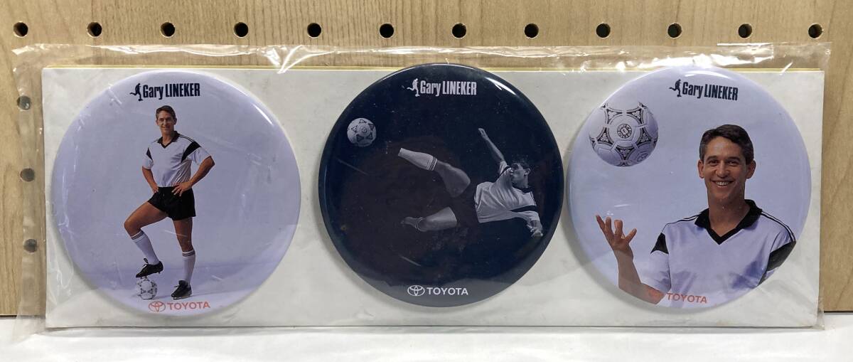 - 未使用 ゲイリー・リネカー 缶バッチ/ステッカー TOYOTA 当時物