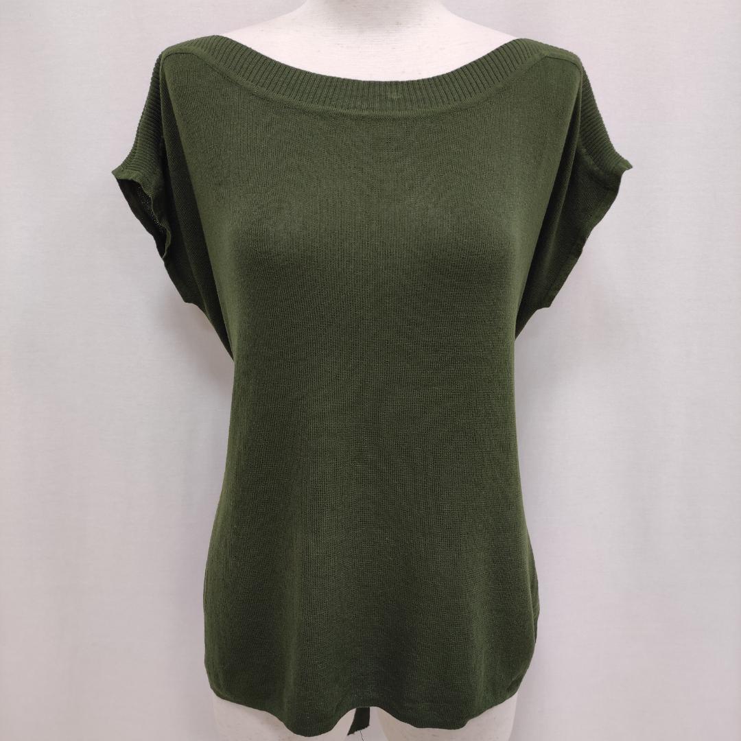 - ベルト付きフレンチスリーブニット グリーン レディース サイズ:L