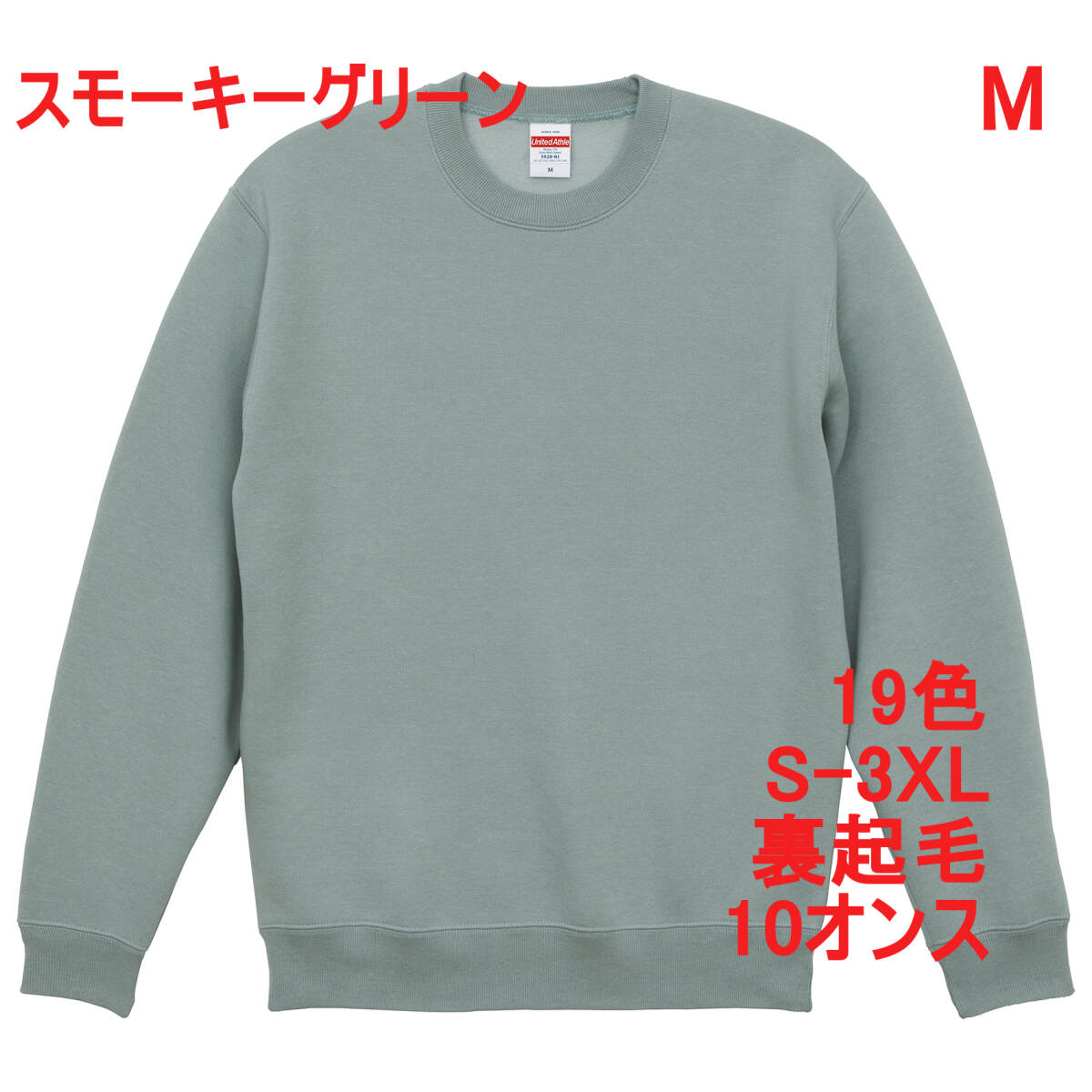 - 【訳有】592801 M スモーキーグリーン スウェット メンズ クルーネック 厚手 裏起毛 10.0オンス 無地 ユナイテッドアスレ