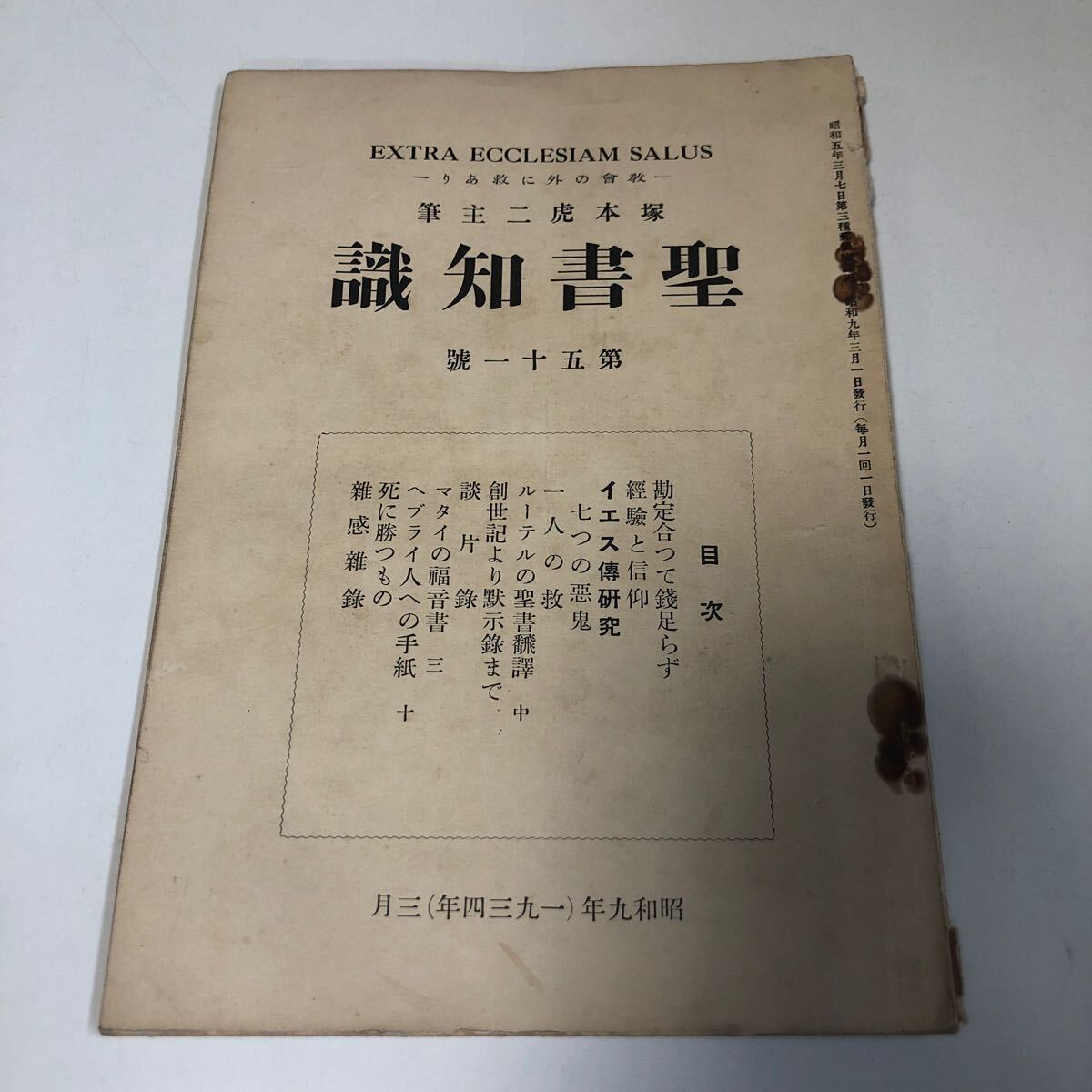> M5i-014 聖書知識 塚本虎二 第五十一號 昭和9年 昭和初期 1934年 51号 教会の外に救いあり イエスキリスト キリスト教