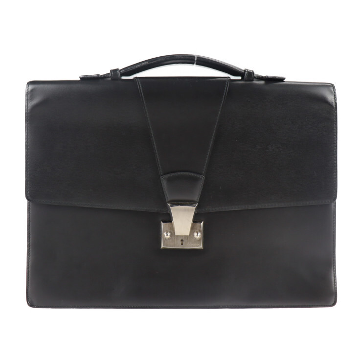 > カルティエ トラディション マストライン ビジネスバッグ レザー ブラック シルバー金具 ブリーフケース 書類鞄【本物保証】