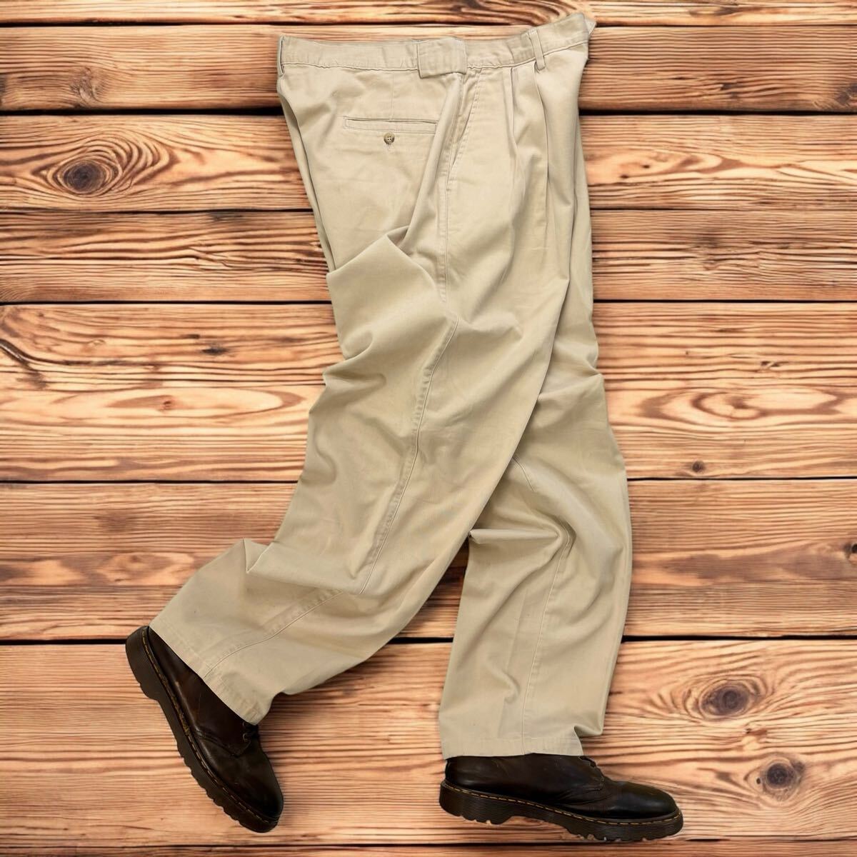 - 【W35】 90s Polo by Ralph Lauren ポロバイラルフローレン ベージュ系 ヴィンテージ ポロチノ ツータック チノ スラックス L34