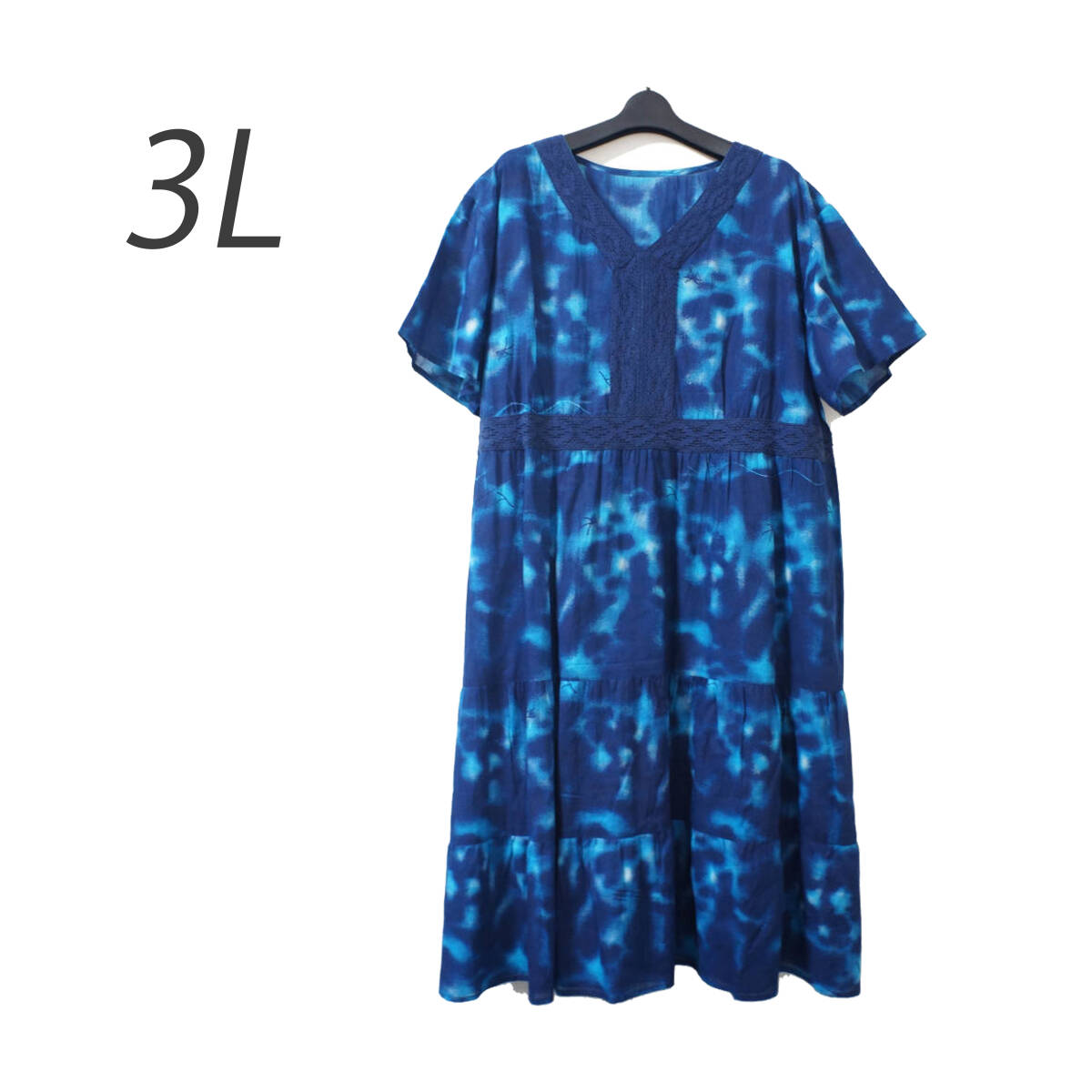 - ●サンプル品/染め風/ワンピース/プルオーバー/3L/ブルー系/レース/レディース●x0018