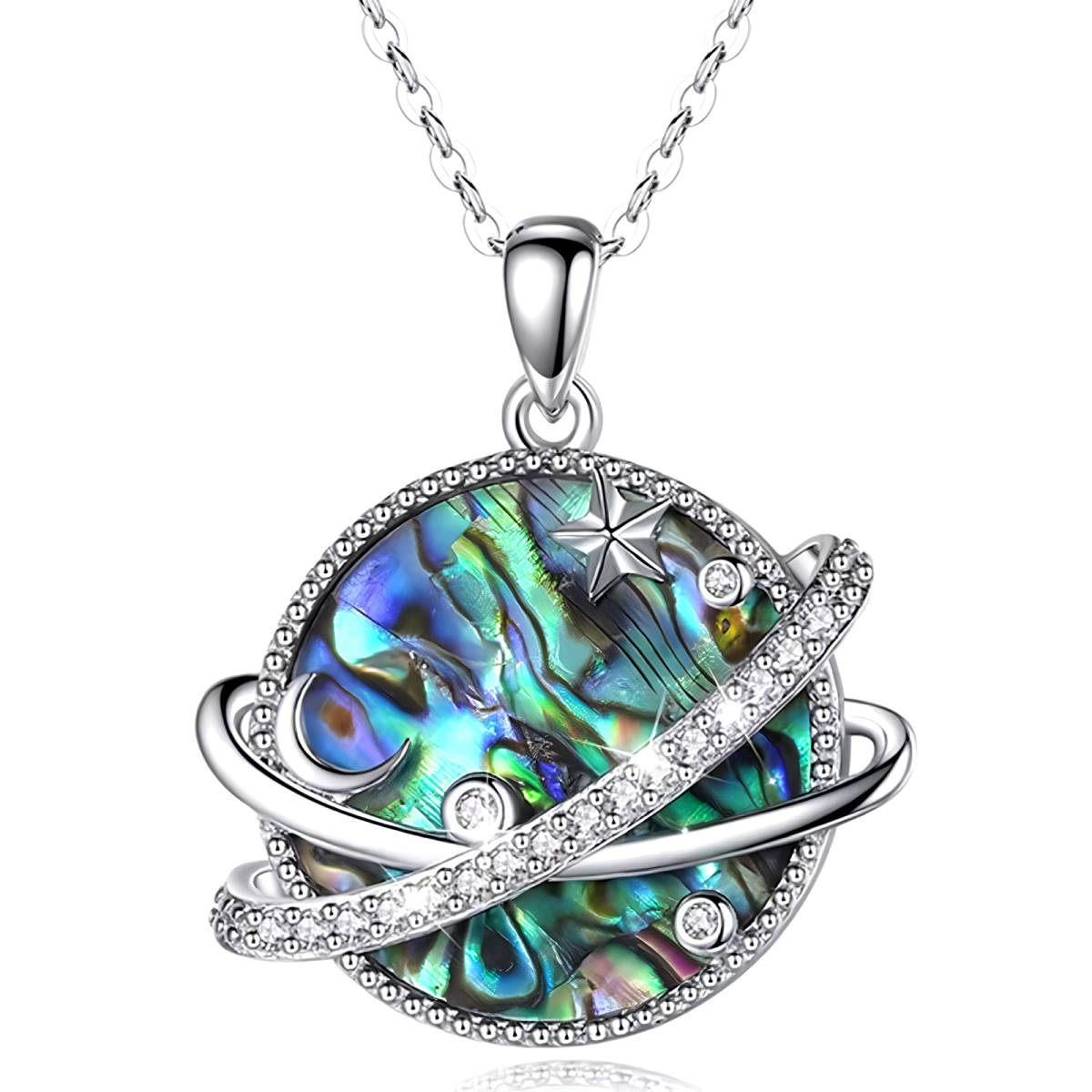 > 新品★送料無料★惑星ギャラクシー七色の土星ダイヤプラチナ仕上925シルバーネックレス 誕生日プレゼント旅行夏海祭盆ギフト国内発送
