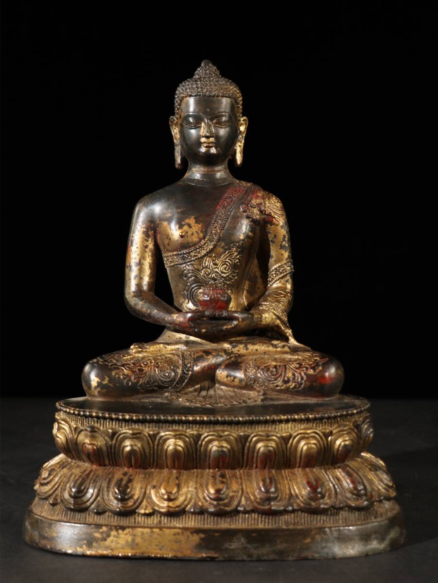 - 蔵友旧蔵出 銅製 泥金 撒朱砂 如來仏 貴重品 置物 古賞物 密宗密教 供養品 仏教美術品