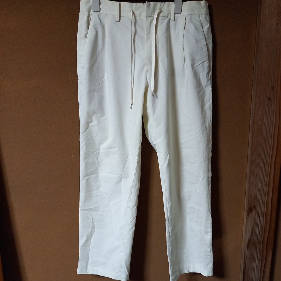 - スーツカンパニー メンズ リネン混 イージーパンツ サイズM COMMUTECH ACTIVE ワンプリーツ アイボリー