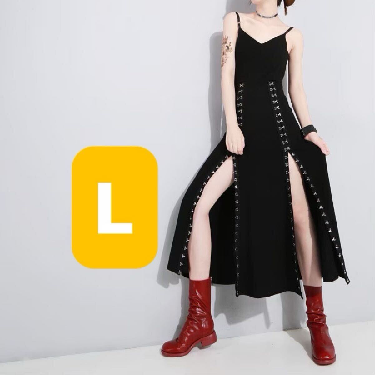 > ゴスロリ ロングワンピース キャミソール フレアスカート 魔女 ドレス ゴスロリ スカート ロングスカート コスプレ ブラックコーデ 黒 L