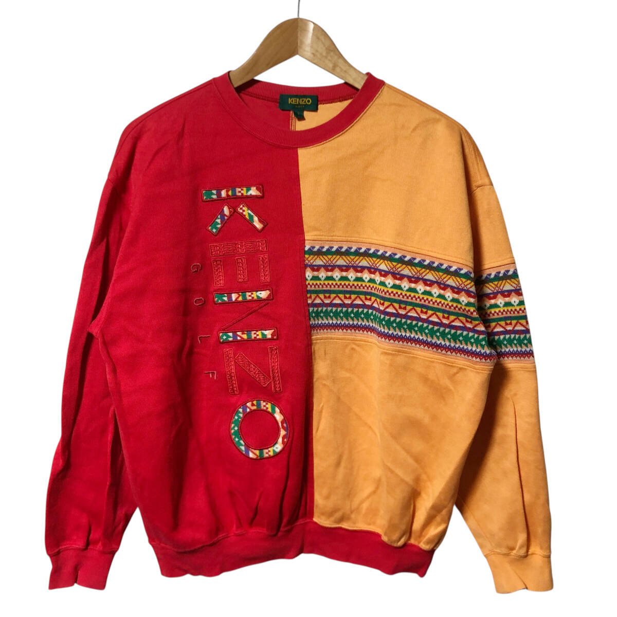 > 90s KENZO GOLF ケンゾー ゴルフ スウェット トレーナー ロゴ バイカラー 2 赤 黄色 ヴィンテージ 日本製 メンズ A10