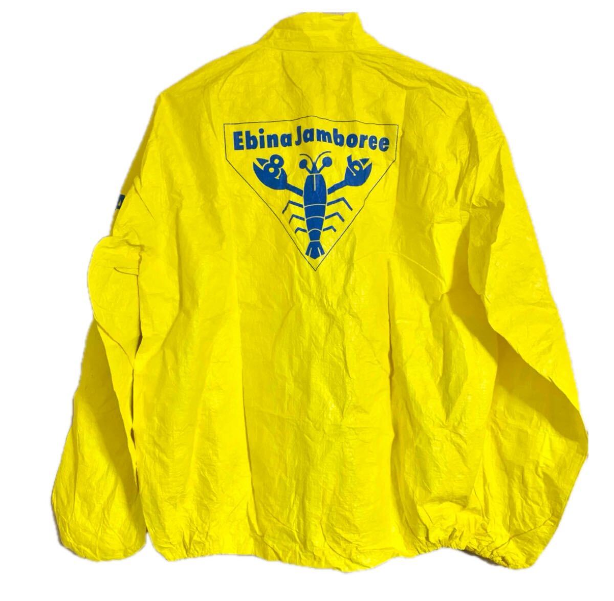 - 長袖ジャケット ウィンドブレーカー 海老名ジャンボリー上着 イエロー Ebina Jamboree 86 黄色 ビニールジャケット 撥水素材 防水