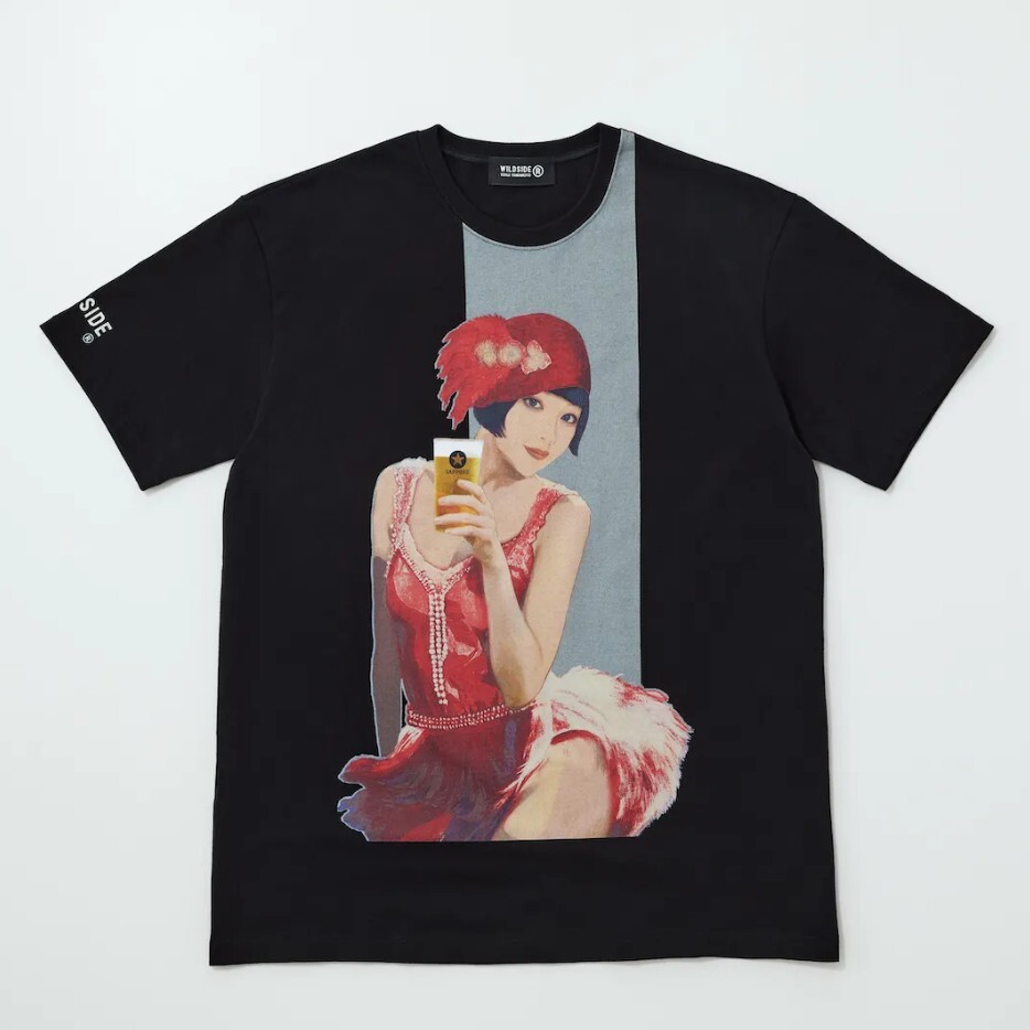 > 新品未開封 WILDSIDE YOHJI YAMAMOTO 内田すずめ サッポロビール 黒ラベル コラボTシャツ 美人画 ブラック 黒 S 赤 レッド ヨウジヤマモト