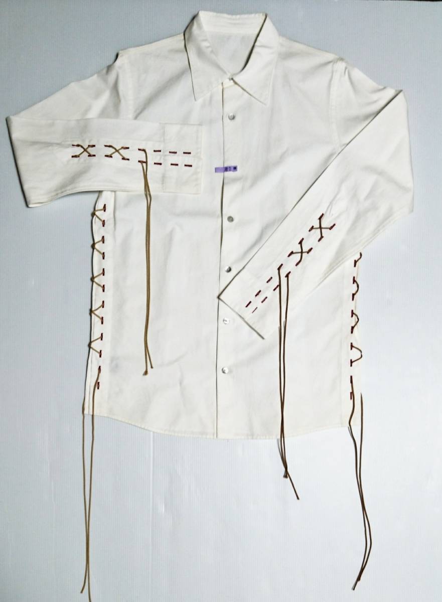 - ★ MORGAN HOMME 編み上げ 長袖シャツ ホワイト メンズ L モルガン オム シャツ