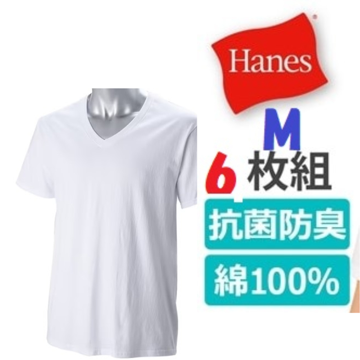 - 【Hanes(ヘインズ)】綿100%・抗菌防臭 Vネック半袖Tシャツ2枚組X3計6枚 サイズM
