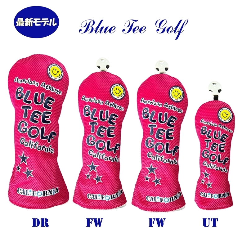 > ■オークション【4P:ピンク】ブルーティーゴルフ【メッシュ スマイル】4本セットヘッドカバー BLUE TEE GOLF DHC-007 送料無料