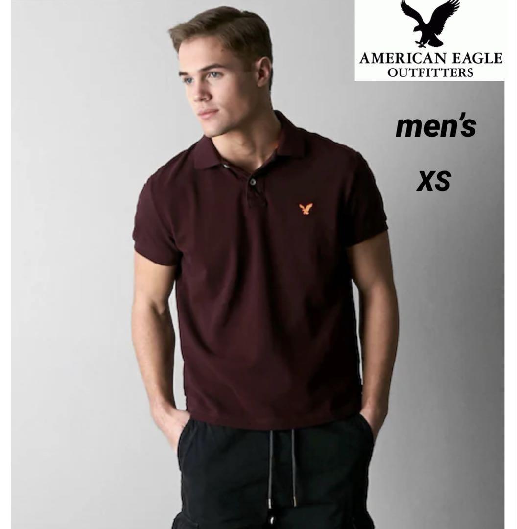 > アメリカンイーグル メンズ AEOビンテージフィット ポロシャツ XS 大きめ レディース M 相当 ワインレッド