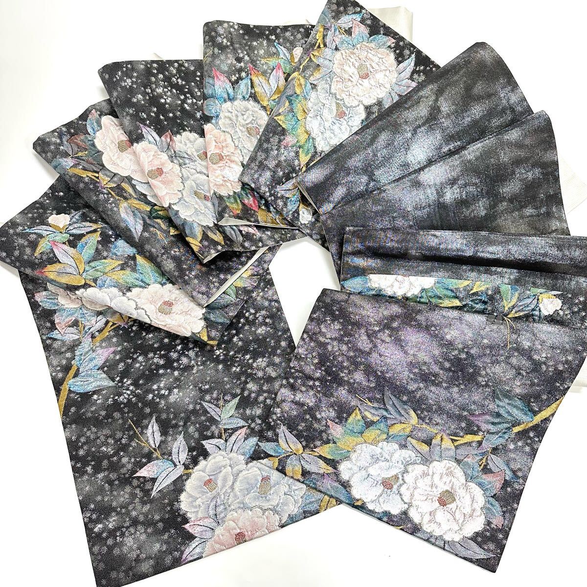 - 【七福】c573 逸品 高級品 正絹 袋帯 六通 椿 金糸 銀糸 豪華
