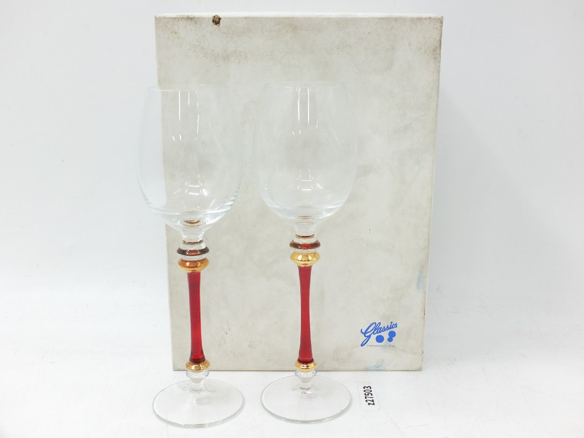 > 【z27503】Impressionen Mundgeblasen ワイングラス レッドゴールド 2客セット まとめ 格安スタート