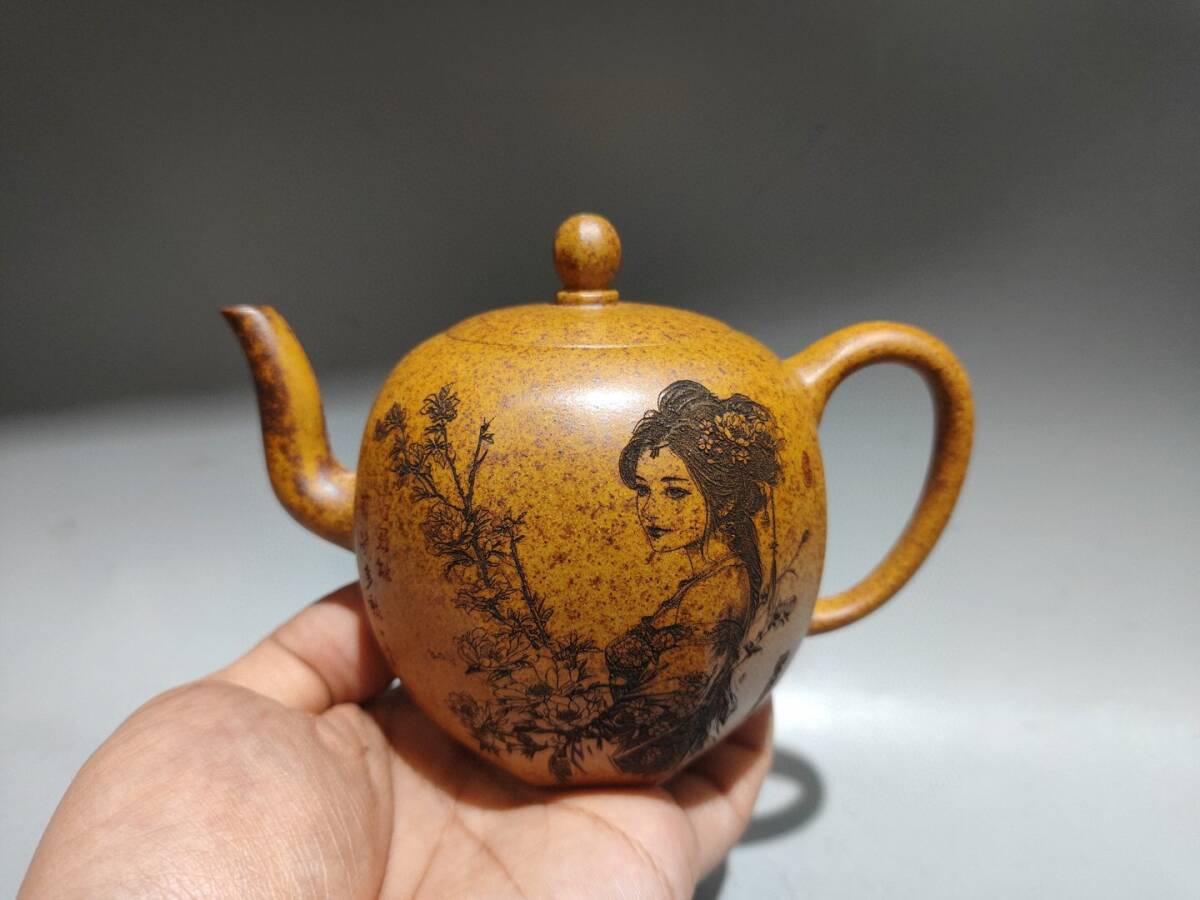 - 蔵友旧蔵出 紫砂壺 柴燒八方美人肩壺 李志剛款 原礦龍骨金砂 茶道品 煎茶道具 文房賞物 希少珍品