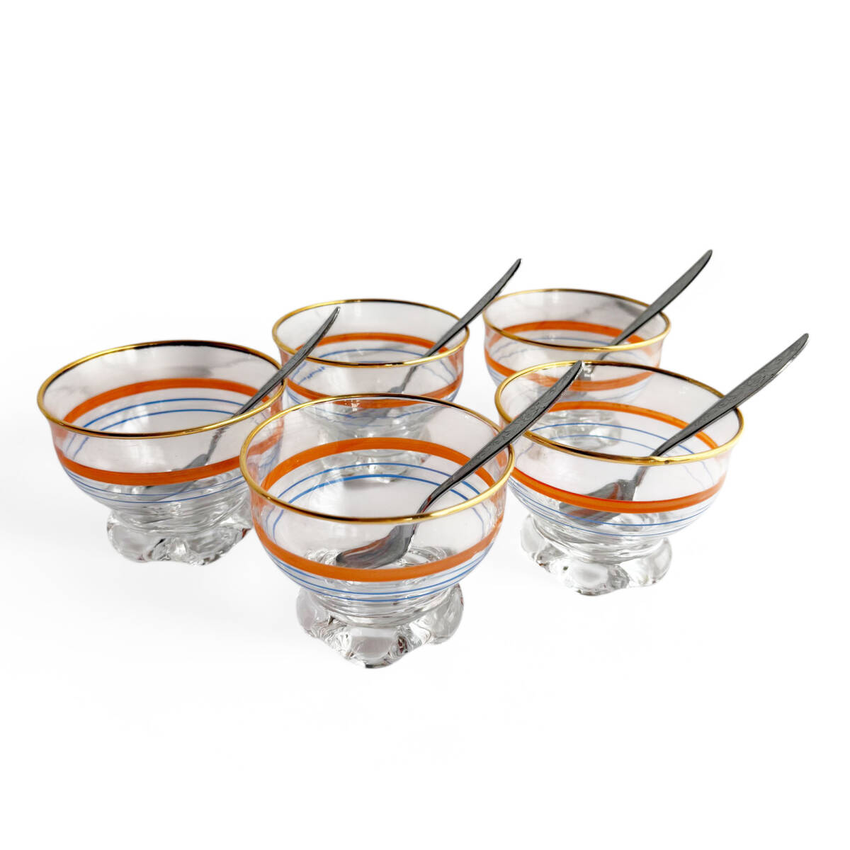 - M7-763 当時物 未使用 フーベル 氷カップ 5個セット スプーン付 デザートカップ 食器 昭和レトロ