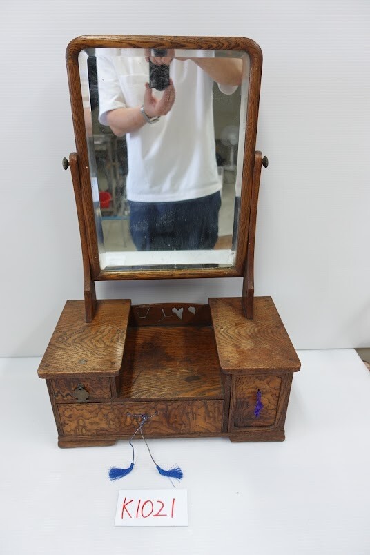 - 【k1021】和風 木製鏡台 ミラー 引き出し付 アンティーク ドレッサー 骨董 古道具 現状渡し