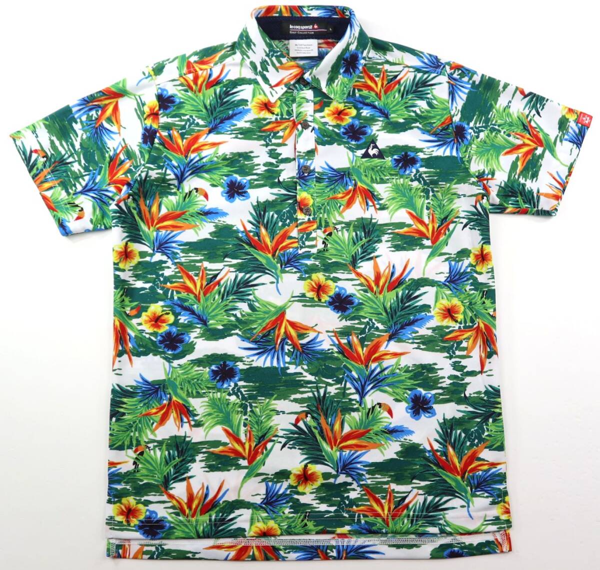 - 極美品★le coq sportif GOLF COLLECTION ルコック・ゴルフ ボタニカル柄 半袖ドライポロシャツ/Lサイズ