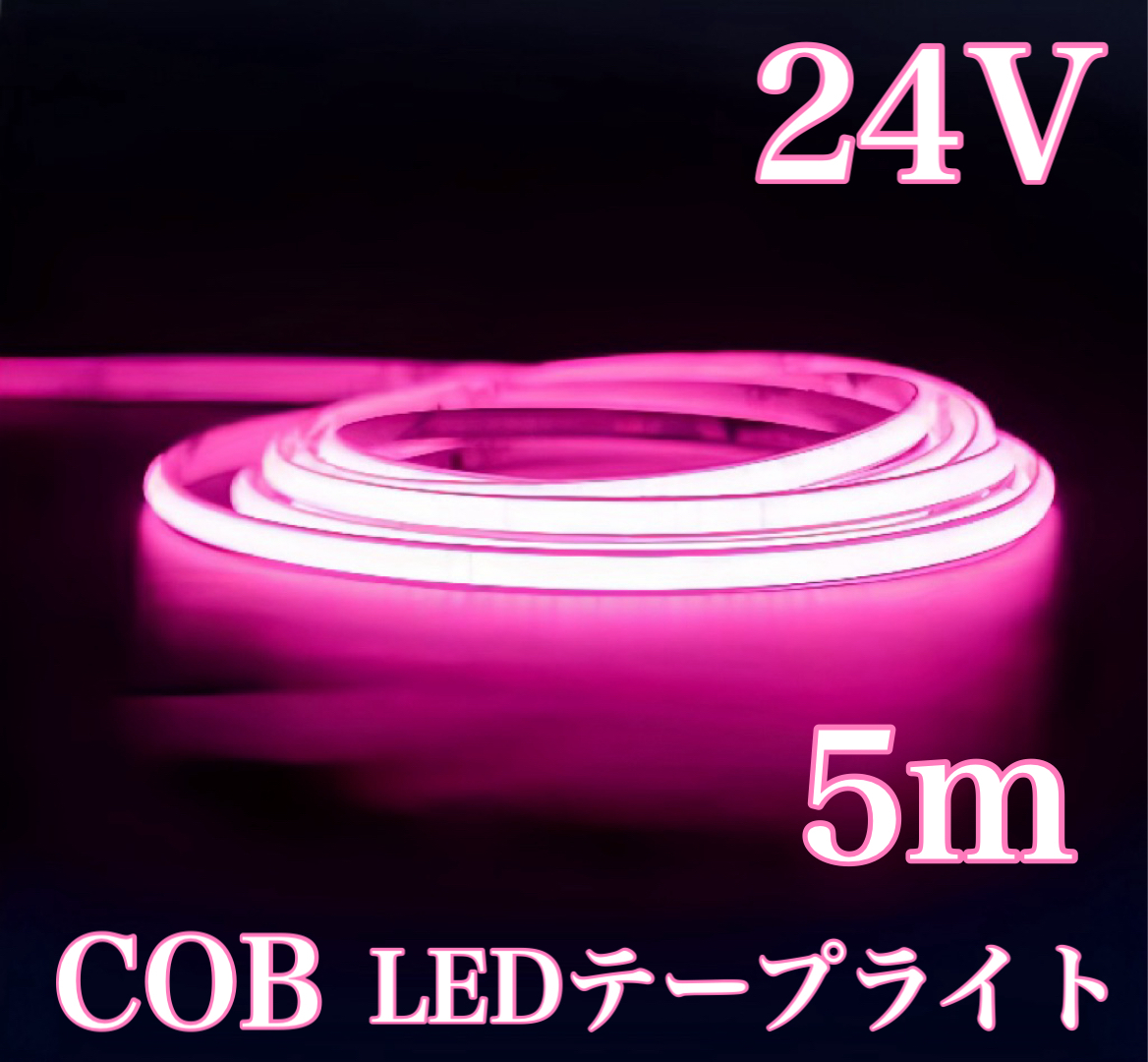 > 極細 極薄 24V COB 面発光 LED テープライト ピンク 桃 5m 色ムラなし 切断 柔軟 防水 チューブライト トラック 船舶