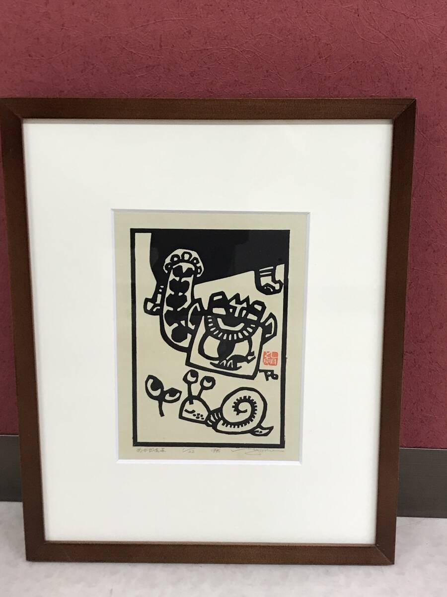 > HG8062【真作】兵頭俊朗「めが出たよ」1/33 1995年 木版画 美術 芸術 肉筆サイン 額装:縦約32.5cm 横約26.5cm 箱あり