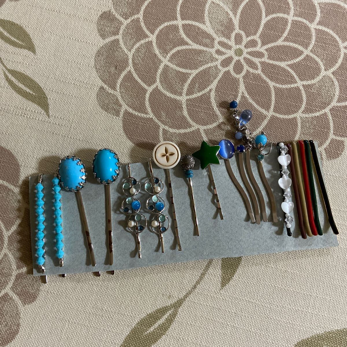 - ヘアピン 19 ブルー 星 ビーズ ヘアアクセサリー