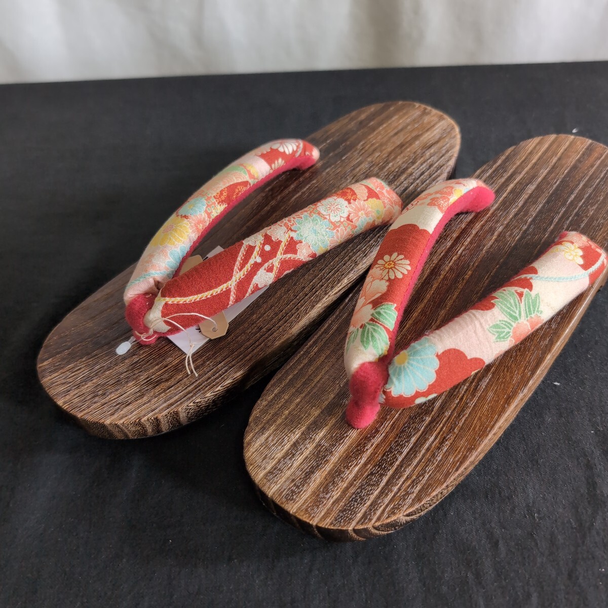 > レトロな鼻を柄が可愛い下駄 桐 焼き 高級 女性用 24cm フリーサイズ Mサイズ 適合足サイズ22~24cm 新品No1