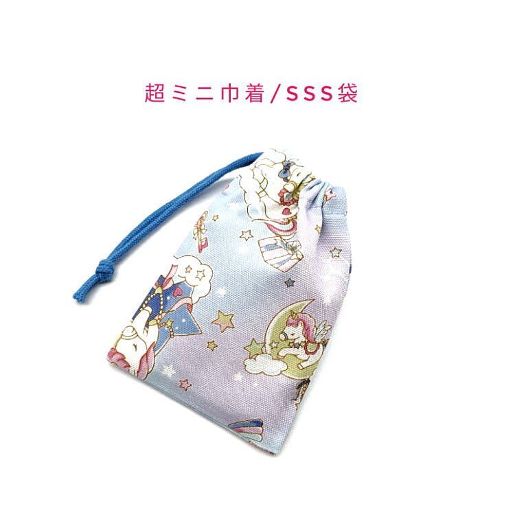 > 超ミニ巾着袋・SSS袋【星空ユニコーン柄 ブルー】マチ無し 日本製 巾着 ポーチ お菓子袋 小物入れ プレゼント レインボー ゆめかわ