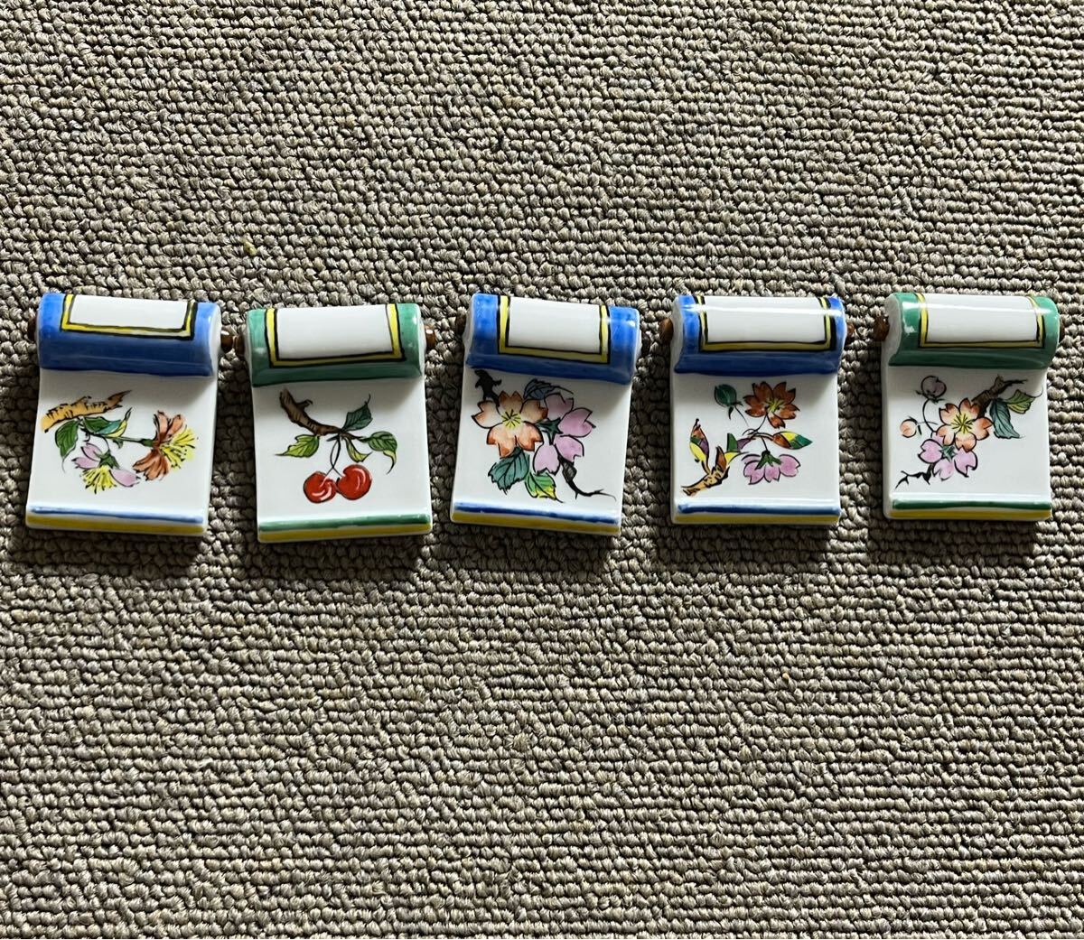 - 花柄 陶器箸置き 5個セット 未使用品 昭和 レトロ