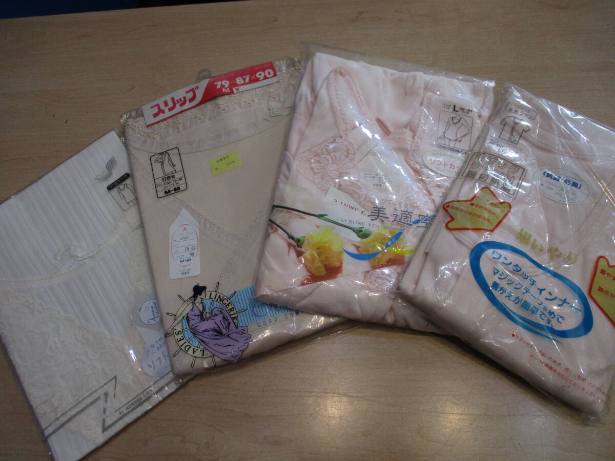 - レディース肌着サイズ混合4点セット 着やすく脱ぎやすい 綿100% マジックテープ止め 打合せ ソフトカップ付き 保管品 おまとめ