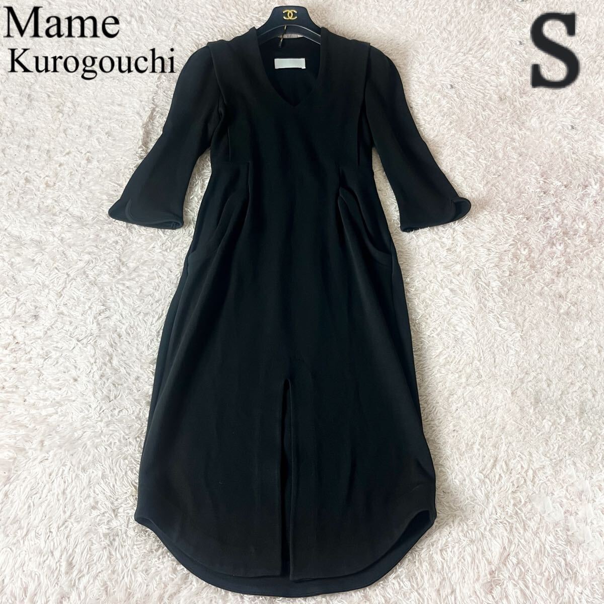 - Mame Kurogouchi マメクロゴウチ ドレス スウェット ワンピース 長袖 スキッパー Aライン フレア 膝丈 ひざ丈 ポケット ブラック 黒 S