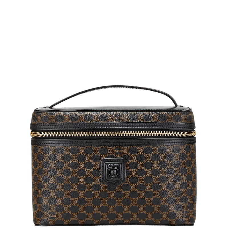 - セリーヌ マカダム バニティバッグ ブラック ブラウン PVC レザー レディース CELINE 【中古】